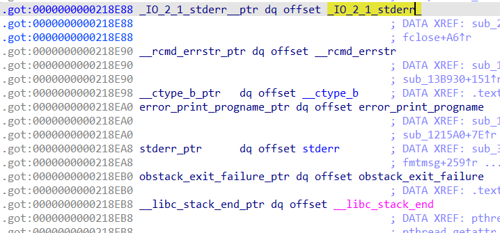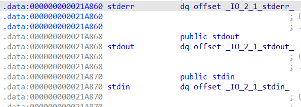 可以看到很多地方都存的有_IO_2_1_stderr_,但是IO攻击中实际要修改的是elf文件的bss段的stderr,如果elf文件的bss段没有stderr,此时修改libc的.data区域才有用