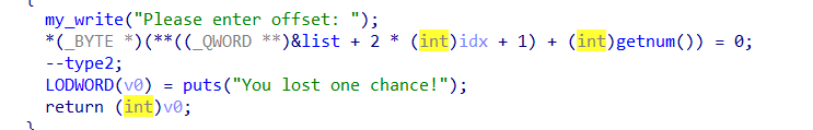 - 注意这里的指针有多少次解引用,如果一个chunk在unsortedbin或者largebin中,其fd加上这个getnum,就可以让stdout里面的位置置0