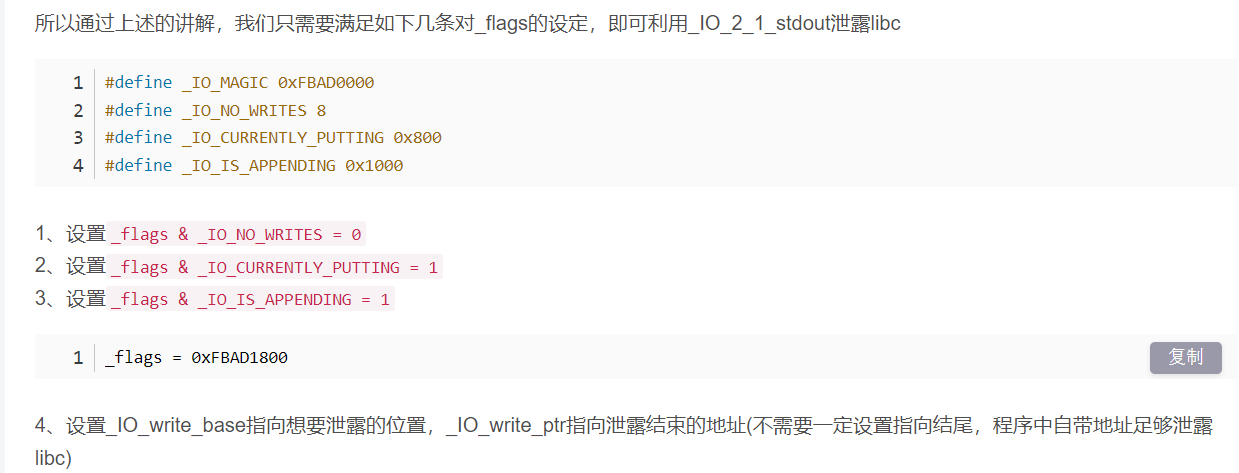 [TOC] 遇到puts或printf,就会将_IO_write_base指向的内容打印出来。实际操作中发现如果是write函数还不行