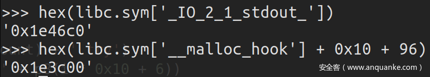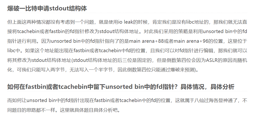 对于一个libc里面的函数,其地址为libcbase+libc.sym[’…’],_IO_2_1_stdout_和main_arena非常接近,因此覆盖2字节后只有1位不同(在此图中是4和3不同),因此要进行爆破,1/16概率