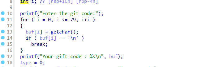 - 这个gift code有个很明显的%s泄露漏洞,可以无脑泄露栈上的数据,非常有用