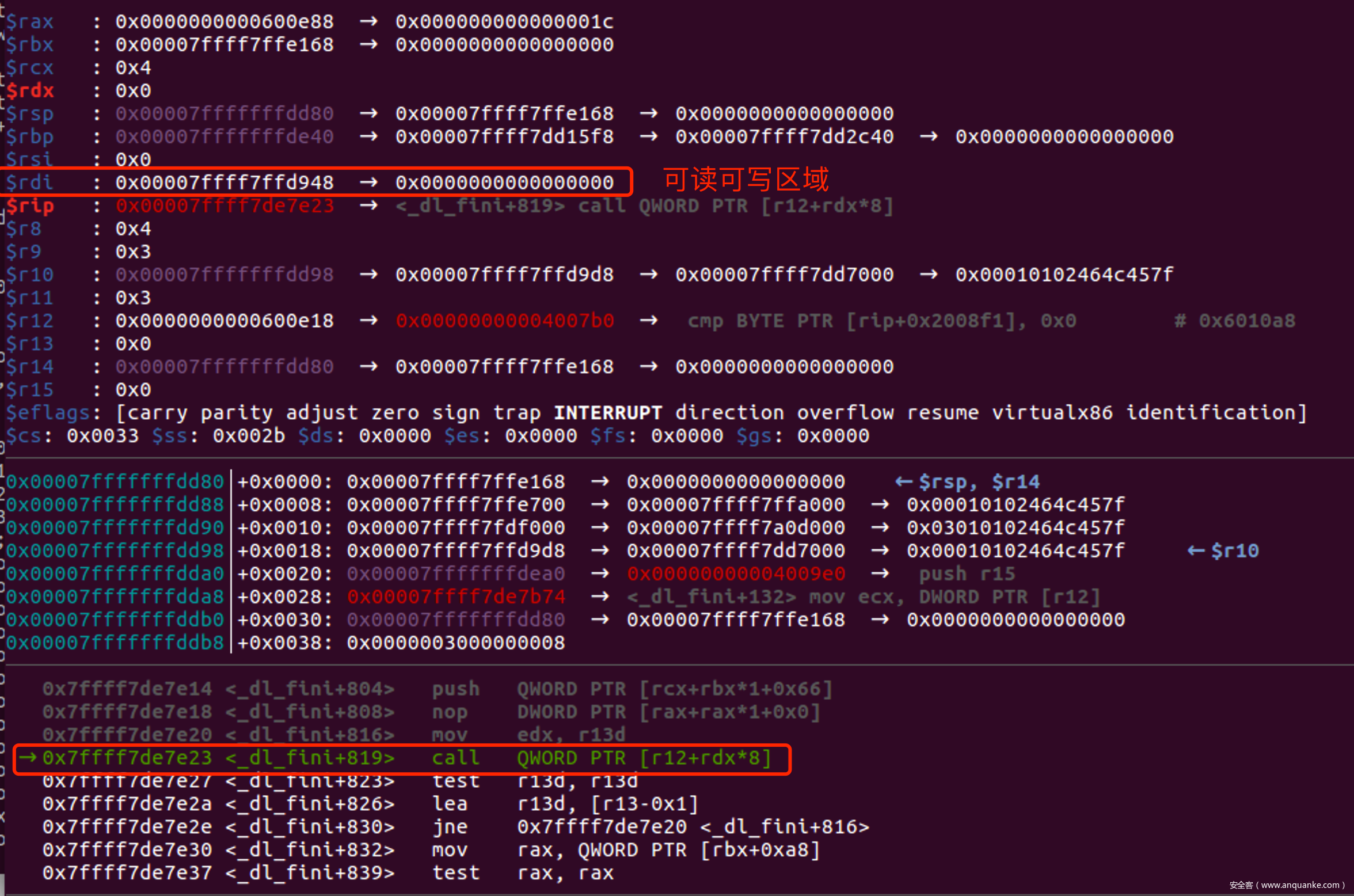我们可以看到在多个fini_array函数调用之间, 寄存器环境十分稳定, 只有: rdx r13会被破坏, 这是一个好消息
