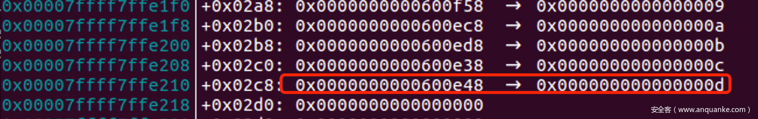 这里阐述一下如何找偏移,因为rtld_global结构体里面套结构体,很难数出偏移。但是我们可以直接search -p 0x600e18,这样就可以看出偏移