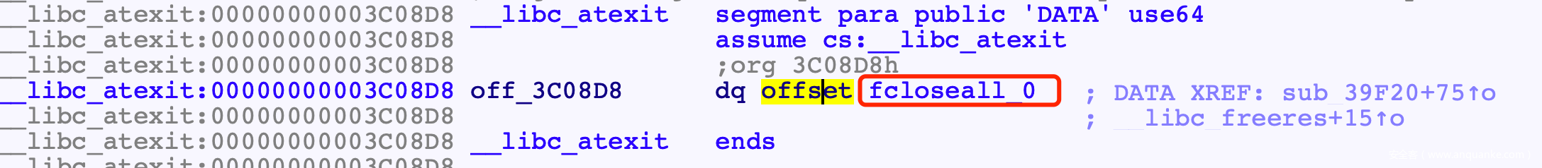 //退出时调用__exit_funcs链表中的函数,__exit_funcs位于libc的.data段