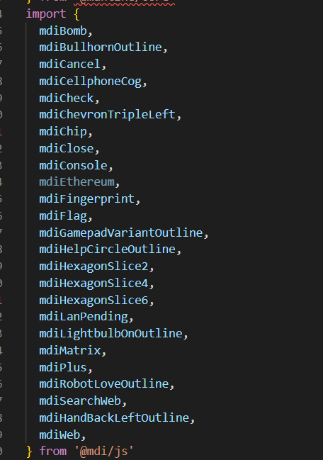 询问GPT得知,这是json的一个包,反正类似的东西,可以运行npm install @mdi/js 下载,然后cd node_modules/@mdi/js,cat mdi.js查看东西