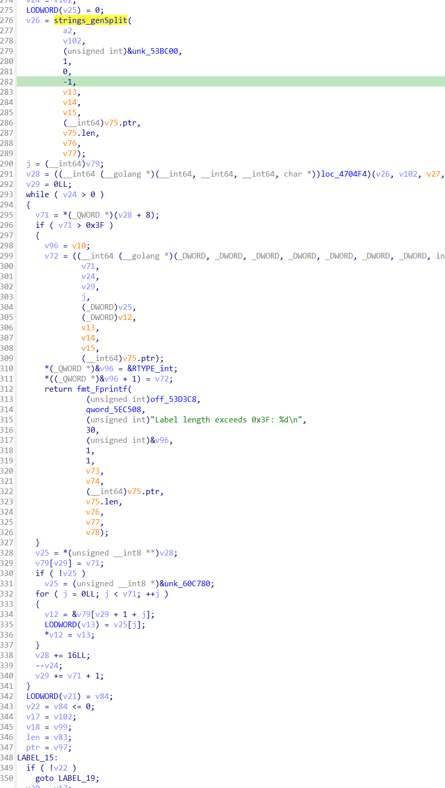 return fmt_Fprintf((unsigned int)off_53D3C8,qword_5EC508,(unsigned int)"Label length exceeds 0x3F: %d\n",30,(unsigned int)&v96,1,1,v73,