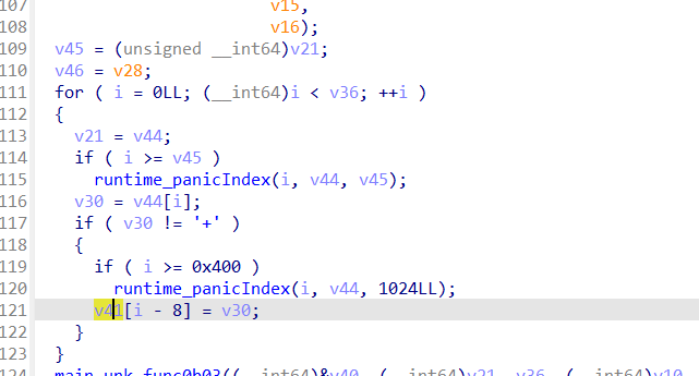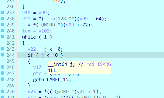 //看到这里可以想到v28像是一个数组,v28[i]存着指针,v28[i+1]存着len,所以会有v71 = *(_QWORD *)(v28 + 8);这种赋值