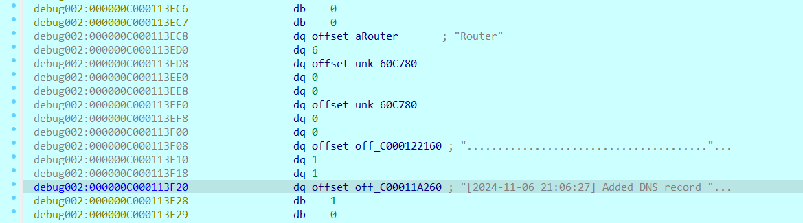 所以可以得出结论,这里的set dns之后会在栈上有相应的记录,这个j = *(_QWORD *)(v99 + 0x48);的赋值应该就是设置的dns的数目