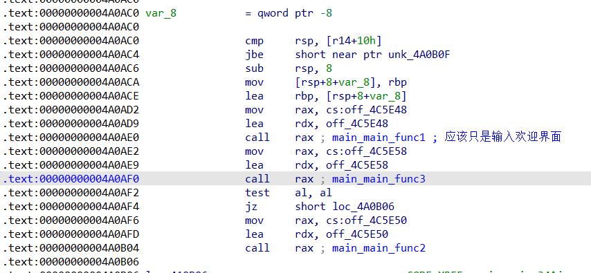 题目流程很简单,这个main_main_func2是个后门,但是main_main_func3永远返回0,所以正常情况下永远不会执行到后门。所以如果能栈溢出,我们肯定是希望能够直接覆盖返回地址为后门就可以了
