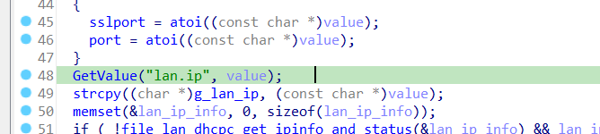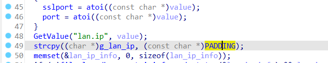 主要是g_lan_ip的值不对,导致建立socket的时候解析都出错了,但是由于是虚拟环境所以GetValue值不对,所以想着直接控制g_lan_ip的值,通过patch解决了这个问题,这个真的困扰了我很久,因为溯源这个过程很考验能力,也得靠点猜测