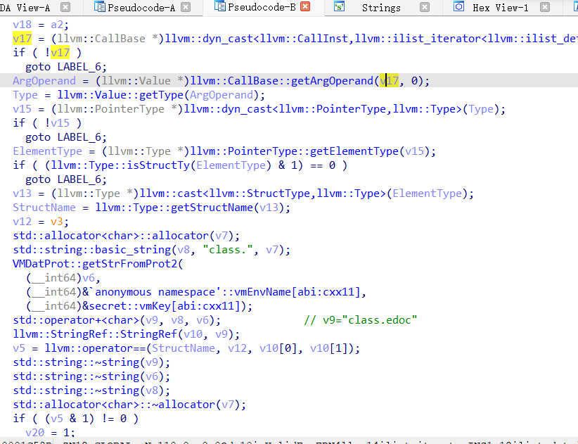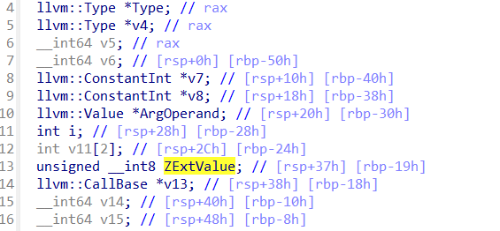 StructName = llvm::Type::getStructName(v13); //得到结构体的名称