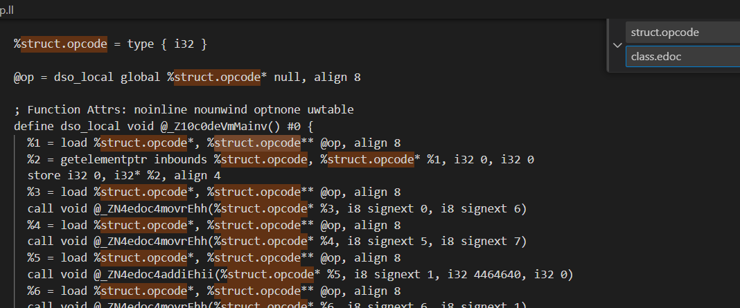 - clang-12 -emit-llvm -S exp.c -o exp.ll后要注意把struct.opcode全部替换为class.edoc(为了过结构体的那个check)
