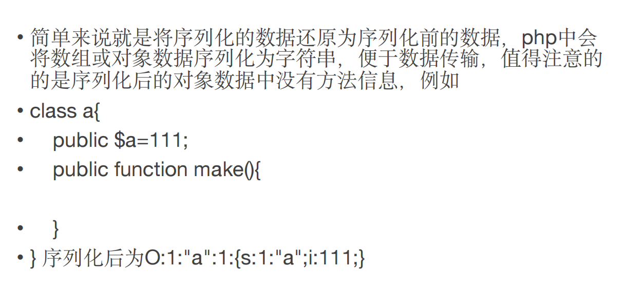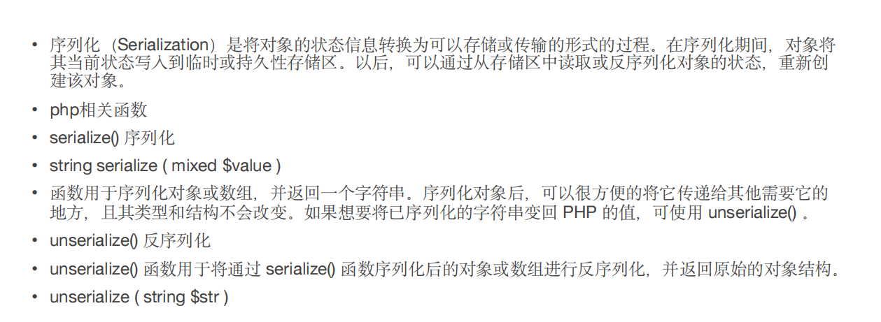 反序列化:恢复原先被序列化的变量 函数: unserialize()