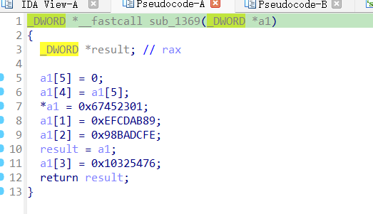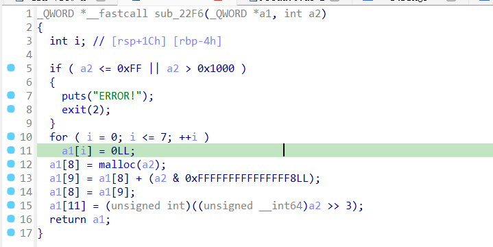 题目是常见的vm类型,这个函数的功能就是初始化mem,a[0]~a[7]是寄存器,a[8]是栈,a[11]是栈大小,a[12]在后面发现是rsp,a[10]在后面发现是rip