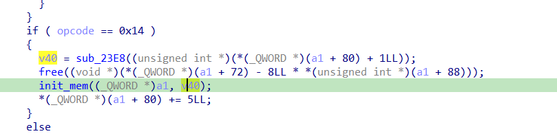 可以看到这个vm给的opcode非常全,而且可以发现最后几个指令,有任意地址的读取,和任意地址的写,同时还有个free然后malloc指令