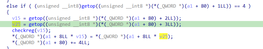 同时发现有个swapreg0指令也即是reg[idx1]=reg[idx2],这里的idx2没有check寄存器的边界,这就造成了越界