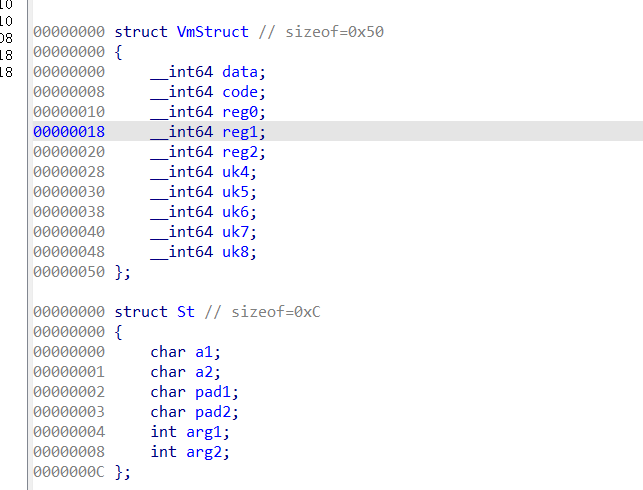 逆向出来的结构体,这里的uk7,uk8应该是和栈有关,但是我做题时候没用到,也就没有进一步逆向了
