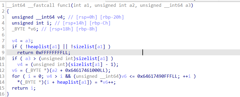 OP0函数里面就是heap的常见操作add,delete,exit,同时case0的read只能往code段或者data段读入数据,case1的write函数只能打印data段的数据