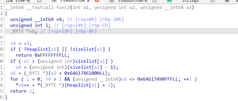 - 泄露libcbase也就是free一个大小为0x500的堆块让其直接进入unsorted bin,然后通过func2函数把这个值写入data段,再用write得到libcbase