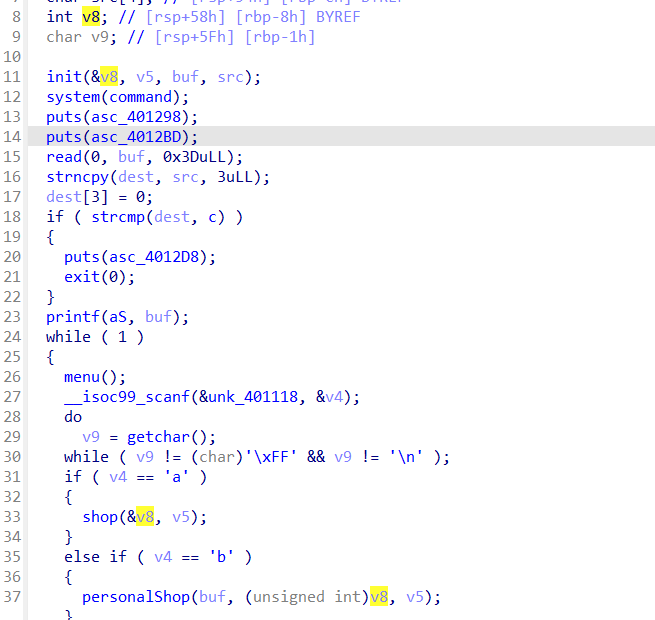 - 发现buf这里有溢出,可以控制v8,v8就是之后的money值