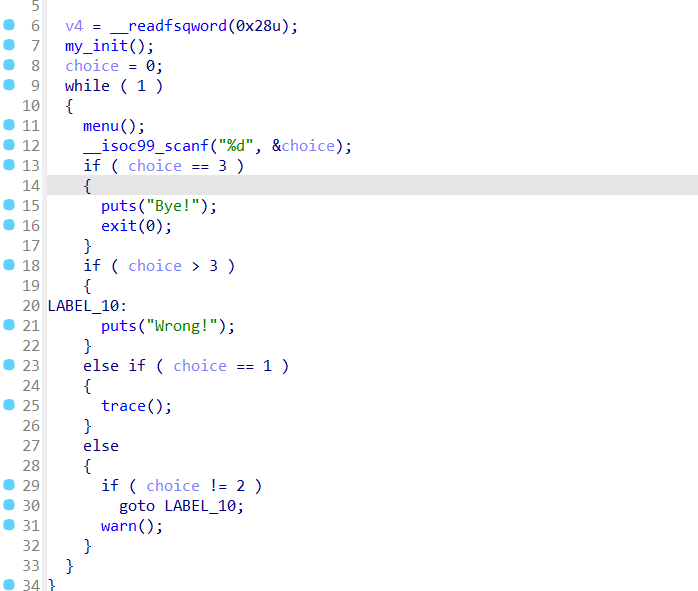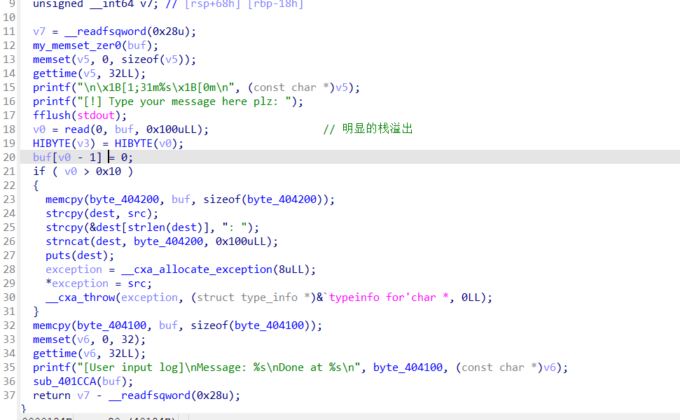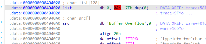 trace函数可以发现有漏洞,可以覆盖到src中的内容,和后面的攻击有关