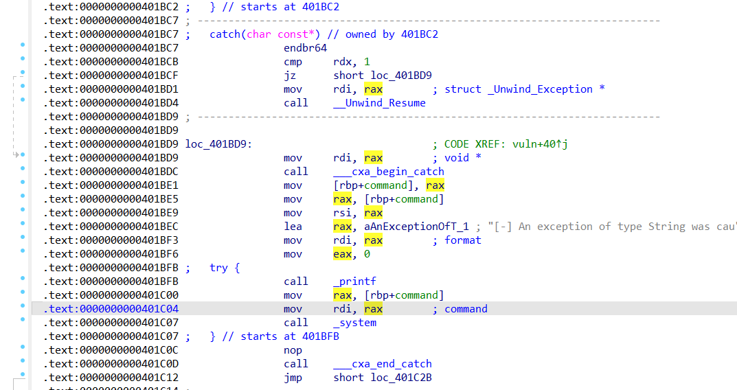 backdoor函数,这里的rax正好就是存exception指针的寄存器,也就是指向src