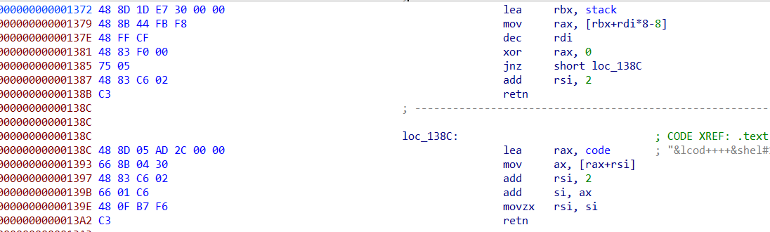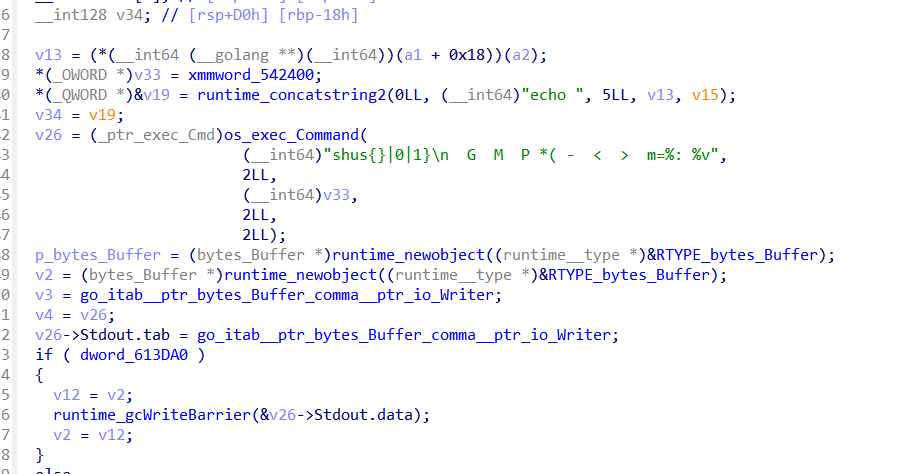 但是笔者在这里并没有看出命令执行到底体现在哪,虽然题目给了很明显的backdoor是这个,猜也能猜到这里是想通过命令执行的漏洞来cat flag,但是在我逆向分析的过程中,并没有看出来这里的漏洞。 可能这种题目就是要靠一点猜吧,题目都给了直接的后门,而且后门还有利用条件(比较&puts值),所以出题人肯定想的是让你满足条件利用后门