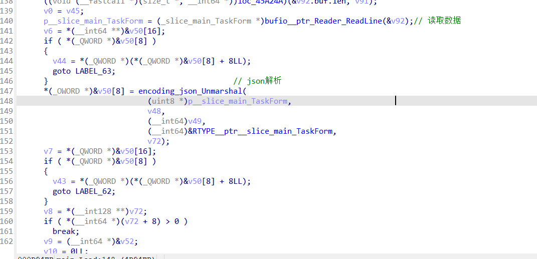 对我个人而言,我觉得过这种交互就像是渗透测试一样,因为有的反汇编的东西太难以阅读分析,只能去试,所以遇到json最好先通过string看看有什么,如果直接看到的不行那就再跟进看看有没有相关字符串