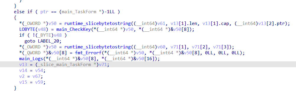 main_CheckKey就是检查输入的是否和&puts地址一样,其返回值是个bool类型,如果相同则进行main_Logs的调用